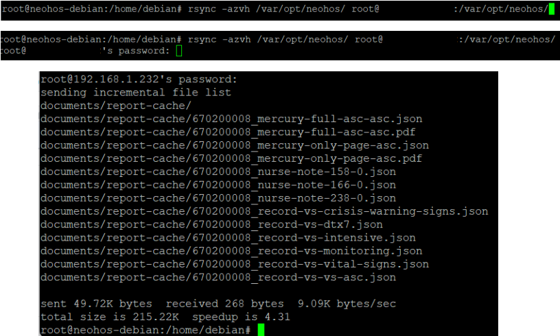 * หลังจากเข้า root มาแล้วให้ใช้คำสั่ง rsync -azvh /var/opt/neohos/ root@เลข IP เครื่อง  \