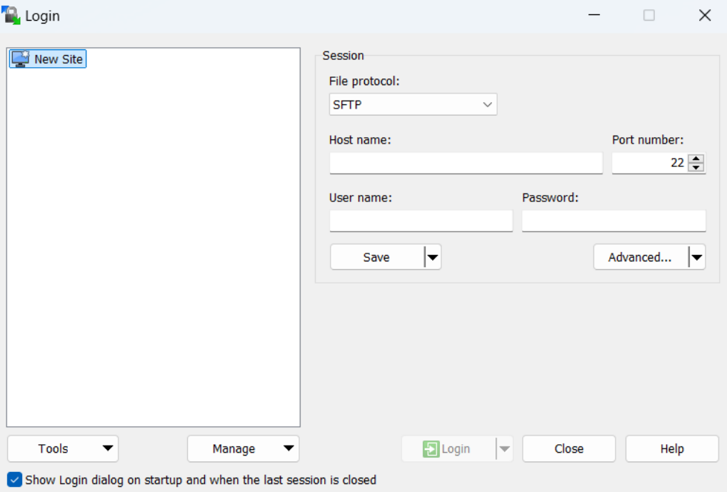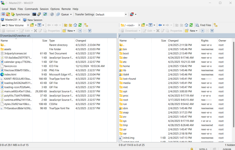 * จากนั้นให้เข้า **WinSCP** โดย Host Name = IP เครื่อง Server, User Name = root และ  \